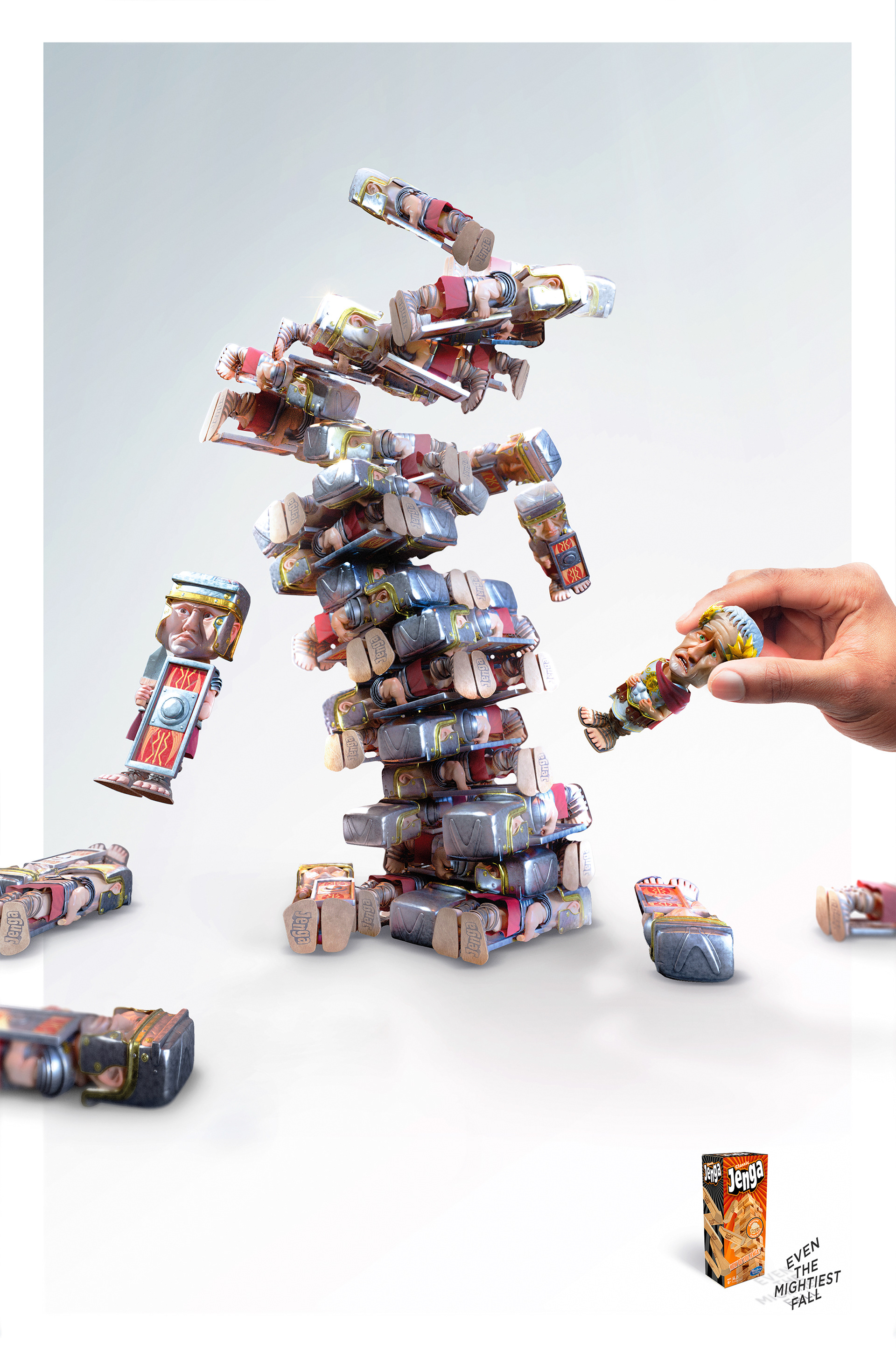 A fun print ad conceptualised for Hasbro's classic Jenga brand. The execution dramatises the key gameplay moment by drawing comparison to the fall of Rome.